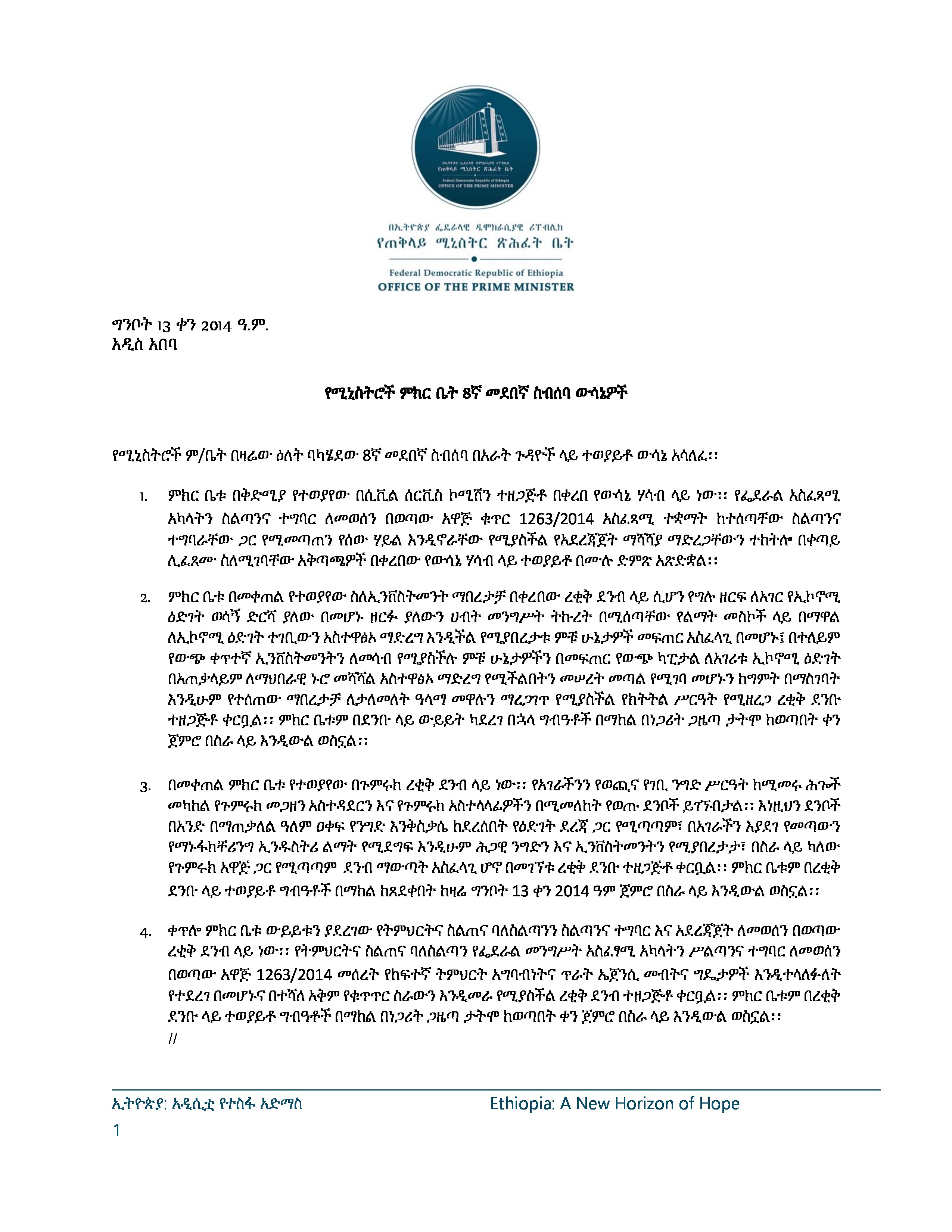 ነሐሴ 13፣ 2014 ዓ.ም.