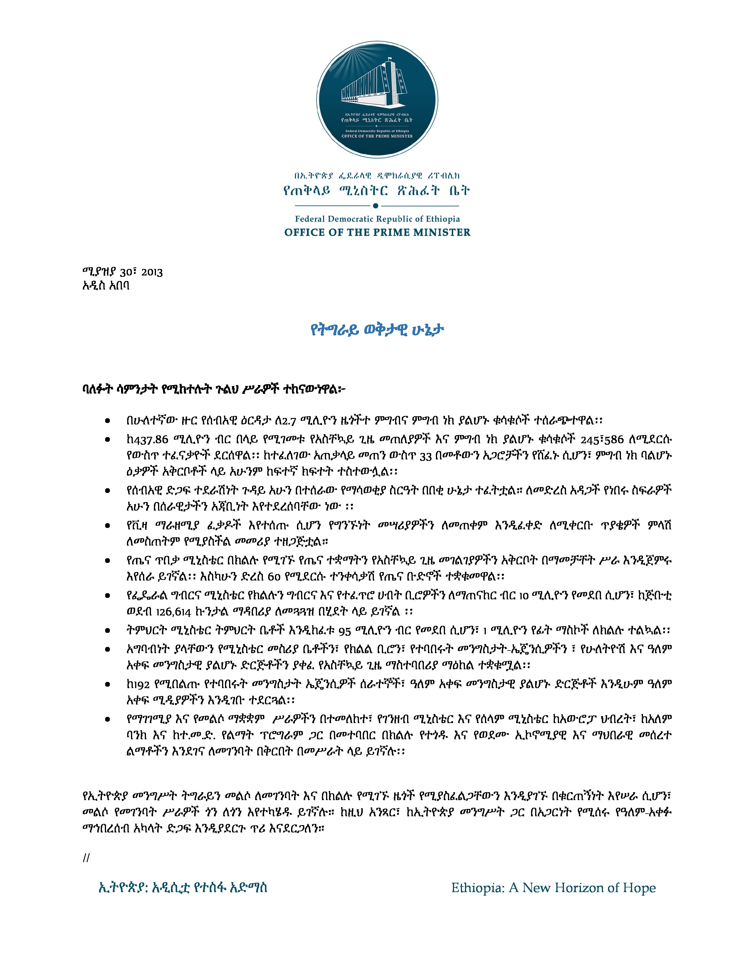 በየትኛውም አስቸጋሪ ሁኔታ ውስጥ ሆነን እንኳን ሀገራችንን የሚመለከቱ አበይት ጉዳዮች ሲገጥሙን ከመቅጽበተ አይን ለሚያጋምደን- ያለምንም ልዩነት እንደ አንድ እናትና ልጅ ለሚያዛምደን እና ያለመለያየት ለሚያዋህደን ዘመን አይሽሬ ኢትዮጵያዊ መንፈሳችን ያለኝን የማይናወጥ ፍቅር በክብራችሁ ጥላ ስር ሆኜ በክብር እገልጻለሁ፡፡
