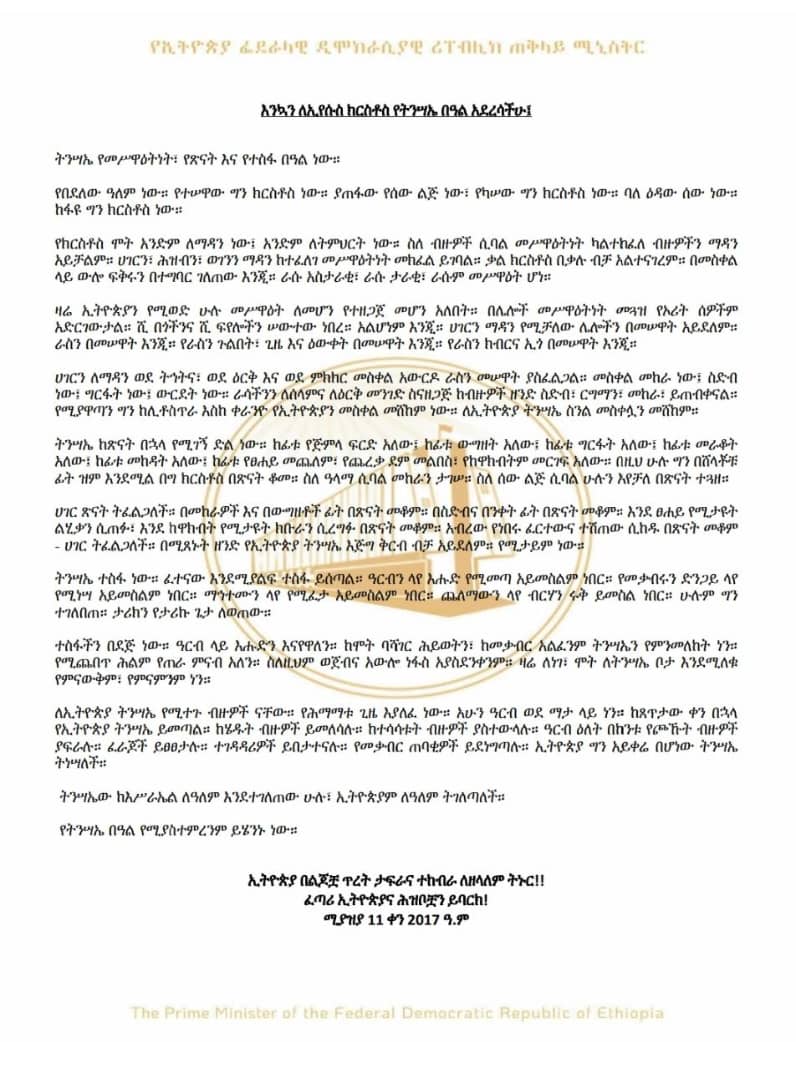 የተከበራችሁ የኦሮሞ ሕዝቦች። ከሁሉ አስቀድሜ እንኳን ለዚህ የተከበረ የምስጋና፣ የፍቅር፣ የሰላም፣ የእርቅና የይቅርታ በዓል በሰላም አደረሳችሁ።